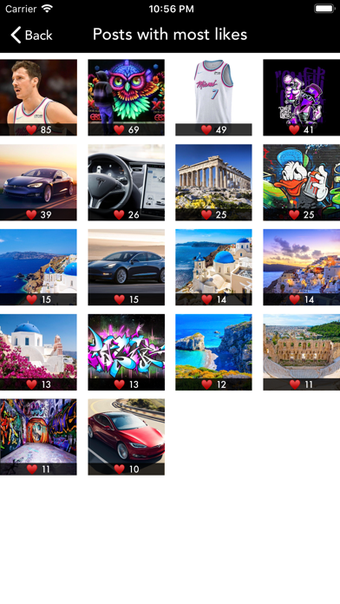 Через несколько секунд приложение вернется с актуальные данные о вашей учетной записи Instagram. Конечно, вы видите и обычных, таких как ваши подписчики в Instagram. как самый активный из них — оценивается по совокупности факторов. Вы также можете увидеть, какие из ваших сообщений набрали больше всего лайков до того момента, как вы запустили анализ, отсортированные по умолчанию по убыванию количества лайков.